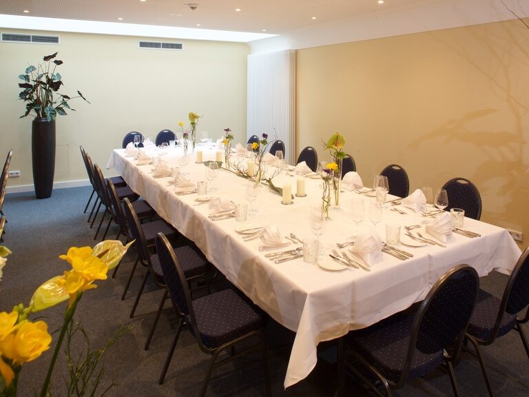 Unser Bankett- und Tagungsraum ist klimatisiert und mitTeppichboden ausgestattet.